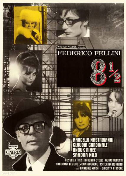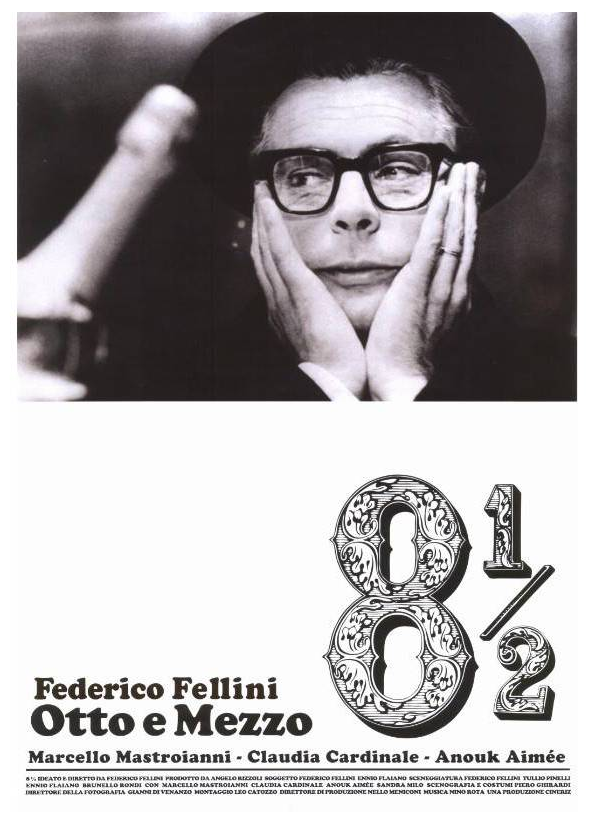 8 1/2 nos cuenta la historia de Guido, un director de recién adquirido éxito que se enfrenta a su película ocho y medio en plena crisis creativa, rodeado de extraños y esperpénticos personajes, en un mundo donde el límite entre realidad y fantasía es difuso. El film es obra autobiográfica de Fellini (siendo su película ocho y medio, tras ocho obras y un corto), y en ella se redondean temas tratados en La Dolce Vita y se plantean otros tantos (la infancia,...)que se irán desarrollando a lo largo del resto de la obra del director.
