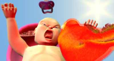 Un precioso bebé duerme apaciblemente en su cochecito en medio de un parque verde y tranquilo. Su beatífico sueño se ve interrumpido por la aparición de un gorrión que no deja de piar. Exasperado por la matraca sin fin del pajarraco el bebé reacciona. Así dá comienzo un insólito duelo entre pájaro y bebé.