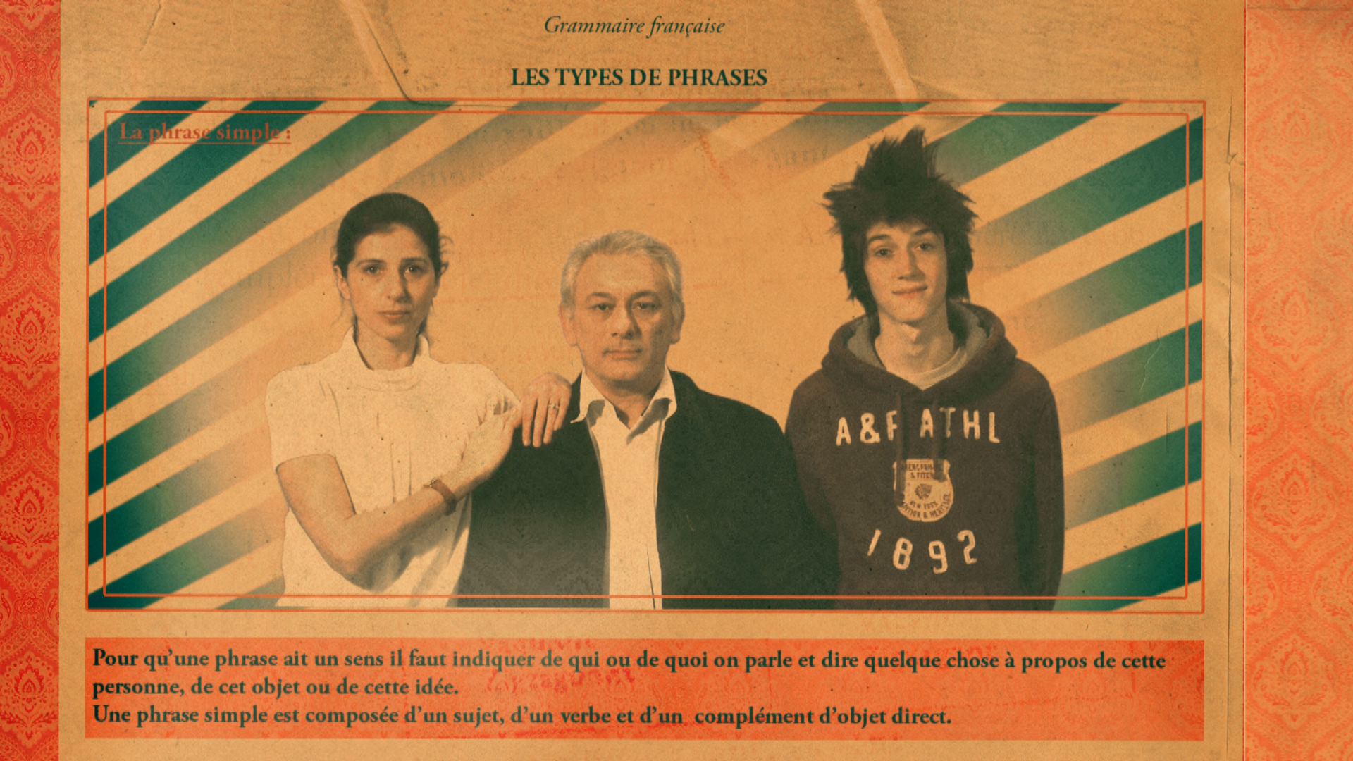 Avaz, joven de diecisiete años de origen armenio por parte de padre. Desde que es pequeño, Avaz ve a su familia como una frase. Su madre es el sujeto, su padre el verbo y él mismo el complemento de objeto directo. Desde este punto de vista y a través de una serie de observaciones gramaticales, Avaz nos cuenta la vida de su familia, hasta que su padre se va al hospital, enfermo de cáncer.