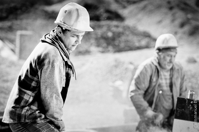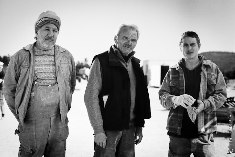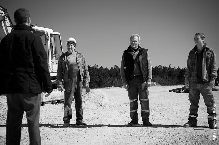 En una pequeña obra perdida en medio de la nada, tres obreros reciben la visita imprevista, pero temida, de un representante del jefe.
