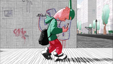 En un mundo urbano en el que el bolígrafo de cuatro colores cubre el cemento, un SMS circula por una serie de personajes todos anónimos. Buscando el destinatario del mensaje, la cámara se desliza, se mezcla y navega alrededor de los humanos, adictos a las nuevas tecnologías que les sirven de unión: teléfonos móviles, MP3, ordenadores, GPS, etc. La caricatura de una sociedad descrita con humor y fantasía.