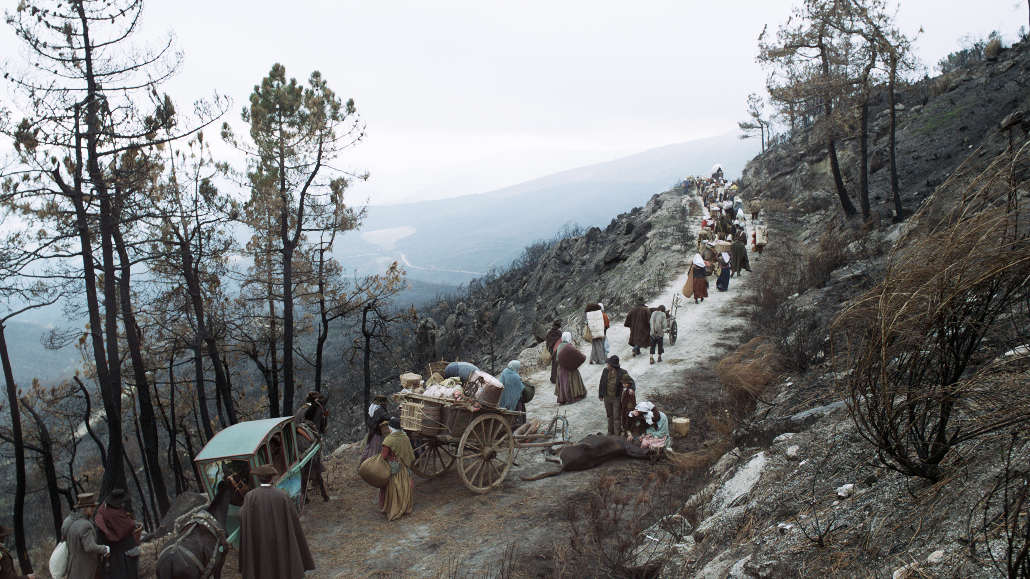 Dicha estrategia, seguida de una operación de tierra quemada, obliga a huir a la población civil. Mientras acompaña la marcha de los soldados, todo un pueblo padece, día tras día, los estragos de la guerra, a través de pueblos en ruinas, bosques y cultivos asolados. Algunos reafirman su voluntad de poner coto al invasor, otros, aprovechan la confusión general para dar libre curso a sus más bajos instintos.