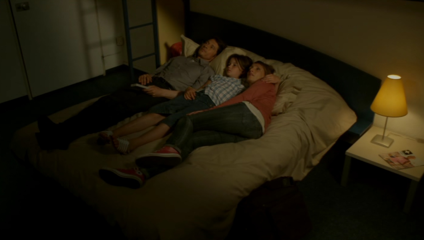 Régis, Olivia y Valentina, la nieta, se van de fin de semana. Una vez en la autopista, les informan que se ha producido un accidente algo más lejos.