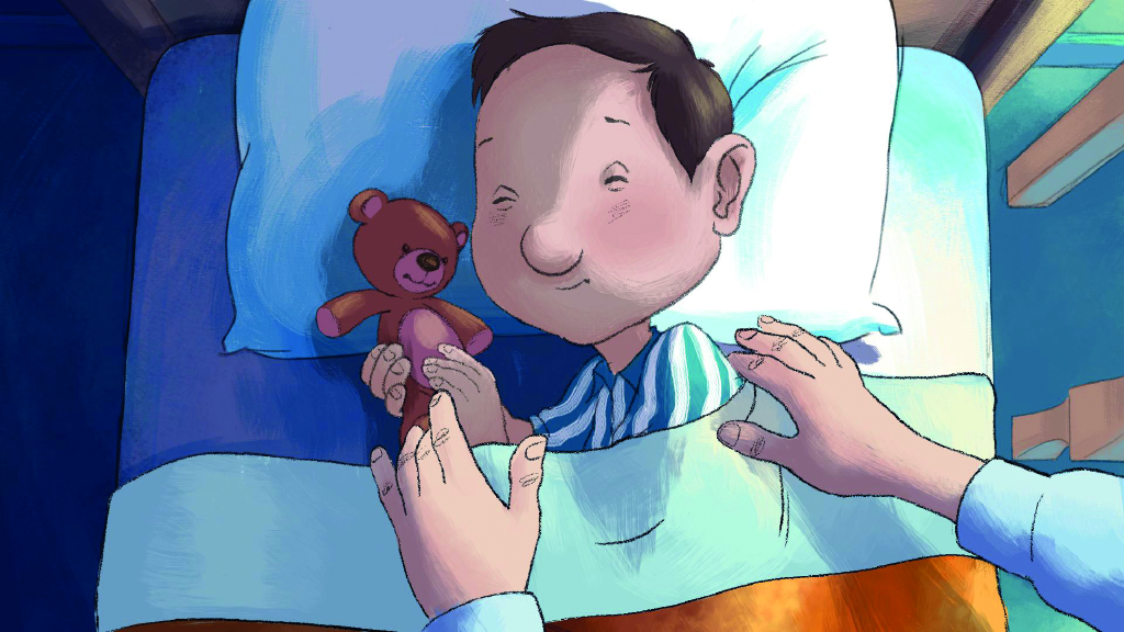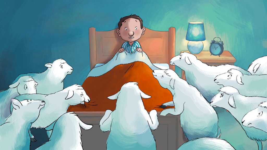 Un niño pequeño no puede dormir y llama a su padre, que está abajo, en el salón, leyendo el periódico. El padre, para quitarse de en medio el problema, le dice a su pequeño que cuente ovejitas. El niño le obedece, solo que se va a encontrar con una buena decena de ovejitas al rededor de su cama.